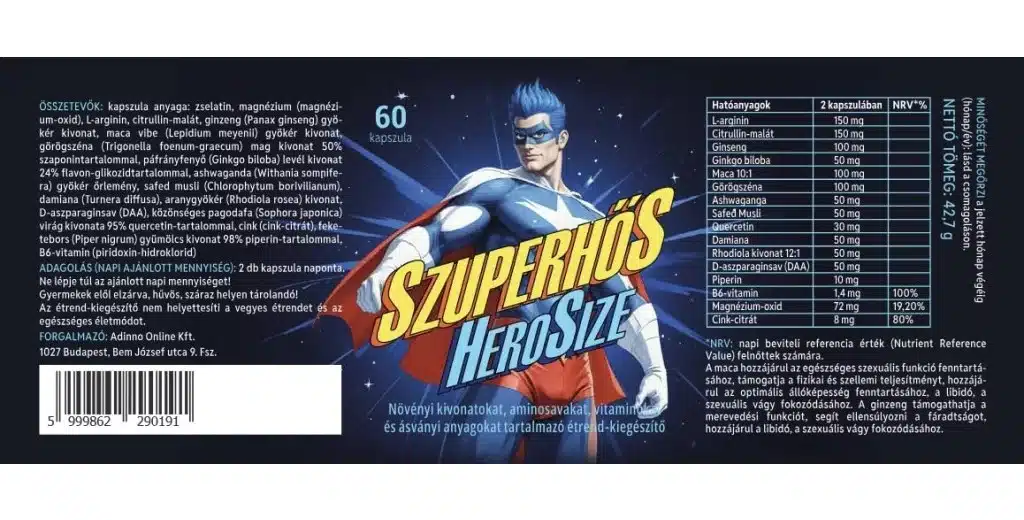 „SZUPERHŐS HERO SIZE kúraszerű potencianövelő kapszula (60 db)” értékelése elsőként